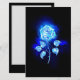 Blühende, abstrakte Rose aus blauer Flamme auf schwarzem Hintergrund. Rose.