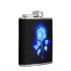 Blühende, abstrakte Rose aus blauer Flamme auf schwarzem Hintergrund. Rose.