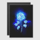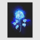 Blühende, abstrakte Rose aus blauer Flamme auf schwarzem Hintergrund. Rose.