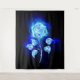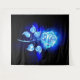 Blühende, abstrakte Rose aus blauer Flamme auf schwarzem Hintergrund. Rose.