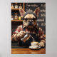 Lassen Sie sich von Charme und Koffein verzaubern! Dieses unglaublich witzig französische Bulldog-Barista ist in rot-weiß-weißem Flanell gehalten und mit Latten hinter einer Kaffeeplantage versehen. Er ist fokussiert, twitschig und rockig Hipster Brillen während er schaumige Kunst wie ein totaler Profi schüttelt. Die Tafel hinter ihm listet Getränke wie "Sniffachino" und "Bark Roast" auf. Es ist der perfekte Mix aus gemütlicher und komischer Küche für Kaffeestationen, Frühstücksbücher oder alle, die Koffein und niedliche Welpen verehren.