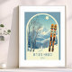 Poster from a wonderful ski resort holiday in the beautiful mountains of Brian Head, Utah. This small poster features an arch with a stunning blue-grey mountain landscape and retro ski boards in an orange tribal pattern in the foreground. The rest is in a lovely light blue tone with the location lettering in a modern font. The design is a lovely combination of retro and modern, and I hope you enjoy it!