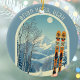 Ornament from a wonderful skiing holiday in the beautiful mountains of Brian Head, Utah. This Ornament features an arch with a stunning blue-grey mountain landscape and retro ski boards in an orange tribal pattern in the foreground. The rest is in a lovely light blue tone with the location lettering in a modern font. The design is a lovely combination of retro and modern, and I hope you enjoy it!