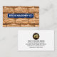 Die Steinmauer ist mit einem abgeschnittenen Abschnitt versehen, in dem Ihr Firmenname "BRICK MASONRY CO" steht. Auf der Rückseite, in einem weißen Cover, oben ist ein goldenes Zuhause-Landschaftslogo, das Sie verwenden können, gefolgt von Ihrem renommierten Namen, den Kontaktdaten und einer Slogan-Beschriftung Option. Eine Karte für Mauerwerk, Gebäude, Bauwesen. #mason #masonrytratrad #brickwall #buildingtragnehmer #generaltragnant #tratratratrader #construction #homeconstruction #handyman #oddjobs #Gebäude #homerepairs #builder #zazzlemade