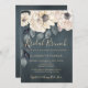 Rustikale, moderne und elegante Brautparty-Chic-Einladung mit wunderschönen Elfenbeincreme-Blume mit dunkelgrauen, moodisch gestrichenen Blätter und einem trendigen handgeschriebenen Typografie-Skript auf dunkelmoorem Hintergrund. +++++++++++ Geeignet für florale Themen rustikale moderne Stil oder böhmische Brautpartys.
