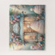 Step into a fairytale moment with Bridal Boutique, a graceful jigsaw puzzle capturing the essence of romance and celebration. This enchanting storefront is dressed in soft pastels and crowned with an overflowing canopy of roses, hydrangeas, and wisteria in delicate shades of pink, blue, and lavender.
