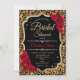 Einladung zur Brautdusche. Elegantes Schwarz-Rot-Design mit Imitaten Glitzer Gold und Leoparden Tierdruck. Enthält rote Rosen und trendy Script Schriftart. Ideal für ein stilvolles Brautparty.
