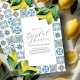 Die eleganten Brautduschen sind mit Aquarelllemonen in Gelbtönen mit Rost und blauen Amalfi Fliesen gestaltet. Die Worte Brautparty ist Set in einer trendigen Handschrift Schrift im Stil der Kalligraphie druckbare Schreibwaren. Eine reizvolle Wahl für italienische Hochzeiten in Urlaubsort oder ein italienisches Brautparty. Weitere Party Einladungen unter www.zazzle.com/dotellabelle