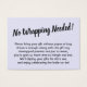 Wenn Sie eine Dusche ohne Geschenkverpackung für eine zukünftige Braut beherbergen, könnte diese lustige, einfache Karte die Wahl für Sie sein. Mit einem eleganten Skript-Schriftart fügte ich zuerst einen Header hinzu, der auf der Vorderseite "No Wrapping Needed!" und auf der Seite "To" und "From" für die Geschenkmarke steht. Das Vorlagenfeld war Set, um den Gästen Anweisungen zu geben, die ihr Geschenk nicht einpacken; bitte ändern Sie den Wortlaut nach Belieben. Es gibt viele beliebte Alternativen zu diesem Text, wenn Sie möchten, eine Änderung. Alle Schriftart und Farben können nach Belieben modifiziert werden.