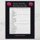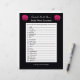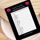 Auf der Suche nach einem lustigen Brautparty Wortspiel. Dieses Brautwort-Rührei enthält 20 hochzeitbezogene Wörter, die Ihre Duschgäste entwirren können. Auf einem schwarzen Hintergrund erscheinen zwei rosa Rosensträuße, und das Wort wird unten zusammengepresst. Das Tolle an diesem Design ist, dass Sie das Design mit dem Namen der Braut personalisieren können! Ein lustiges Wortspiel für ein Brautparty oder einen Polterabend. Copyright henishouseuse paper