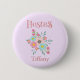 In Great button for the bridal shower hostess, this design feature a lovely lilac background with "Hostess" written at the top in pink fun machen. Underneath is a pink and blue flower bouquet with her name personalized at the bottom. Your order today! Artwork created by: AMBillustrationen http://www.etsy.com/shop/AMBillustrations/