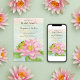 A charming bridal shower invitation showcases a delicate pink waterlily in full summer bloom, symbolizing love, renewal, and the beginning of a beautiful new chapter. A red-eyed tree frog adds a playful touch of wonder and joy, bringing warmth, happiness, and a lighthearted spirit to this romantic celebration as friends and family gather to honor the bride-to-be.