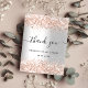 A thank you card for a Bridal Shower. A faux silver metallic looking background. With rose gold faux glitter dust. On front large hand lettered script and the text: Thank You, your text, title and a date.
