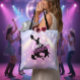 Humorvolle Disco Bachelorette Tote Tasche für Teambride. In wunderschönen Farbverläufen von Lavendel über Periwinkle und Rosa mit einem funky Disco-Ball, einer bronco-belebten Cowboy-Silhouette, einem glamourösen Retro-Schriftart "Bride'em Cowboy" (das Landesäquivalent von "einen Ring drauf setzen") und einer Disco-Beleuchtung Hintergrund. Suchen Sie ID928 um weitere Produkte in dieser trendigen Kollektion zu sehen.