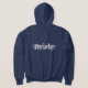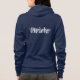 Die Zip-Kapuze wird in Marineblau mit einem extravaganten Text in der Farbe Weiß auf der Vorder- und Rückseite angezeigt. Passen Sie dieses Objekt an oder kaufen Sie, wie es ist.