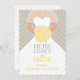 Elégante mariée brillante et graphique en robe blanche avec voile tenant un poteau d'invitation à la douche nuptiale fleurie rose stylisée jaune. Éditez cette jolie invitation avec vos propres mots. Design unique et art graphique de Sarah Trett.