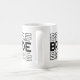 This ceramic coffee mug is shown in a white color with a wedding bride print.