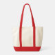 Jumbo tote bag is shown in the natural and red color with a Bride Squad print.