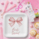 Dieses Design zeichnet sich durch eine sanfte und elegante Ästhetik aus. Oben ist ein zarter, wasserfarbiger Bogen in einem gedämpften, rosa Rosa. Unterhalb des Bogens wird die Phrase "Bride Squad" in einem anmutigen, fließenden Skript-Schriftart geschrieben, der in einem etwas dunkleren Rosa gefärbt ist, das den Bogen ergänzt. Das Gesamtbild ist sauber, charmant und stilvoll, was das Hotel zu einem idealen Accessoire für ein Brautparty macht. Es wäre perfekt für die Brautjungfrauen.