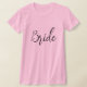 Der T - Shirt der Frauen wird in einem Crew-Hals und kurzen Ärmeln Stil in Rosa mit schwarzem Text gezeigt: Bride. Passen Sie dieses Objekt an oder kaufen Sie, wie es ist.