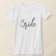 Der T - Shirt von Frauen wird in einem Crew-Hals und kurzen Ärmeln-Stil in Weiß mit schwarzem Text gezeigt: Bride. Passen Sie dieses Objekt an oder kaufen Sie, wie es ist.