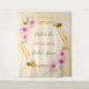 Elegante, lustige, sommerliche Brautparty-Tapisserie. Gelber, weißer Hintergrund mit Wabenmuster. Mit einem Imitat goldener geometrischer Rahmen. Blume mit rosa tropischen Blumen, Hibiskus und Hummeln. Mit dem Text: Bride to Bee und der Name der Braut Vorlage für den Namen und das Datum der Braut. Text in braun, rosa und grün. Kann als Wanddekor für das Brautparty oder als Foto verwendet werden.