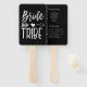 Ein spezieller Hochzeitsfan für den Stamm Ihrer vertrauenswürdigen Braut. Es zeigt ein klassisches Schwarz-Weiß-Design mit den Worten Brautstamm in handgeschriebenem Stil Schriftart geschrieben. Zwischen beiden Wörtern ist ein Stammespfeil, der ein Herz durchbohrt. Auf der Rückseite sind Ihre Hochzeitsdetails, um Ihre Brautmädchen behalten, um sich über das zu beraten, worauf Sie sich freuen können.