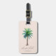Personalisierte Gepäckanhänger für eine Zielbachelorette. Das Design umfasst eine Aquarellpalme, einen "Brautstamm" im modernen Skript-Schriftart und den Namen darunter auf einem rot-rosa Hintergrund.
