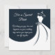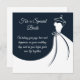 Diese flache Hochzeitskarte wird mit einer Botschaft für die Braut der Freude und Liebe an ihrem Hochzeitstag gezeigt. Mit marineblau-blauem Hintergrund dargestellt. Bearbeiten Sie diese Karte, oder kaufen Sie sie wie gezeigt.