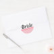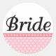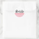 Hochzeitsticker. Brautaufkleber, Gefälligkeiten und Hochzeitsgeschenke mit rosa Punkten und schwarzem Text-Design für Bräute, die den Knoten binden und heiraten.