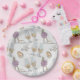 A Pattern Of Wedding Symbols For Couples Wedding Rings, Champagne Glasses, White Doves and Brides Shoe Paper Plates
