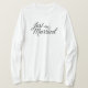 Gerade verheiratet Sweatshirt Outfit für frisch verheiratete Paare. Ideal, um auf den Flitterwochen zum Flughafen zu gelangen.