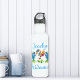 Orangefarbene und blaue Blumen mit einer Blattlinie. Name oben und Bridesmaid oder ein anderer Titel unten.