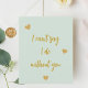 Eine sage grüne Hintergrundfarbe. Goldenes handgeschriebenes Stylesheft. Zitat: Ich kann nicht sagen, dass ich ohne Sie für Ihre Bridesmaids Geschenkboxen/Taschen. Zurück: Platz zum Schreiben von Hand.