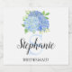Die hiesigen Champagneretiketten sind mit blauen Hydrangea-Blume versehen. Personalisieren Sie sie mit dem Namen und dem Namen Ihrer Brautjungfrau.