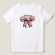 T - Shirt von Bridesmaid mit rosa-weißem Polka Dotbogen personalisiert mit dem Namen der Brautjungfrau in einem eleganten Schriftart.
