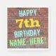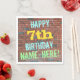 Dieses lustige Geburtstagsthema der Papierserviette enthält eine Nachricht wie "HAPPY 7th BIRTHDAY, NAME-HERE!", in der der Name personalisiert sein kann. Im Hintergrund ist eine Ziegelwand aus rötlich-braunen Ziegeln dargestellt. Der anpassbare Text der Nachricht weist Farben wie Blau, Gelb und Grün auf und hat ein Aussehen, das von dem eines bemalten Graffiti inspiriert wird. Napkins wie diese könnten vielleicht auf einer Geburtstagsparty für jemanden verwendet werden, der gerade seinen siebten Geburtstag feiert. [~Z0000271]