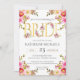 Dramatisch rosa Blüten in jeder Ecke zusammen mit Aquarellblüten überlagert auf der goldenen Tonkunst "Bride" machen eine elegante Aussage vor dem weißen Hintergrund mit schwarzem Brautparty vorne in diesem Design. Die Rückseite ist mit einem goldfarbenen Polka-Punktmuster mit einem Blumenstrauß in der Mitte des Wassers ausgestattet. Composite Design von Holiday Hearts Designs (Rechte vorbehalten).