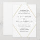 Moderne Hochzeitseinladungen mit einem einfachen Design mit Ihren Veranstaltungsdetails in einem Imitat goldene geometrische Rautenform, auf weißem Hintergrund. Ein minimalistisches Design, das immer noch elegant und stilvoll wirkt.
