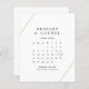 Modernes Budget Save the Date mit einem einfachen Kalender mit zwei Imitaten Goldlinien, eine über die oben links und eine über die untere rechte und Ihr Datum umgeben von einem Herzen, über einen weißen Hintergrund. Unten ist die Nachricht "Bleiben Sie bei". Ein stilvolles Design für das minimalistische Paar. TIPP: Für eine Spalte, die in der ersten Zeile (Woche) kein Datum hat, fügen Sie vor der ersten Zahl einen Leerzeichen ein. Wenn Sie Hilfe bei der Anpassung des Kalenders benötigen, können Sie mich über den "Kontakt"-Button erreichen.