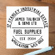Rubberstempel für einen Kraftstofflieferanten oder ein Unternehmen, das Öl oder andere Brennstoffe an Haushalte und die Industrie liefert. Kraftstoff liefert Kautschuk-Briefmarke. Firmenname, Geschäftstyp, plus zwei Adresslinien in kreisförmigem Effekt. Eine Briefmarke aus Geschäftsgummi für alle Arten von Schreibwaren, Briefumschlägen, Packungen etc. Briefmarke Ihrer Rücksendeadresse einfach und stilvoll.