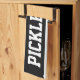 Dieses lustige Design zeigt große Sportbriefe in einem schwarzen Streifen, der mit weißen Streifen auf einem hellblauen Hintergrund hervorgehoben ist. Die Farben und der PICKLEBALL-Text in diesem Template-Design können personalisiert sein.