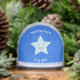 This awesome snow globe features a graphic image of a blue five pointed star with huge eyes and a big smile.
