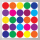 Helle, fette Kreise der Farbe des Regenbogens. Diese großen Polka-Punkte haben eine Vielzahl von Farben wie Rot, Grün, Gelb, Blau, Orange, lila und aquamarin Blau. Ein lustiges und farbenfrohes Design. Ideal für Kinder und Jugendliche und alle, die Lieben färben.