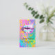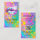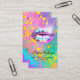 Holographische Lippen mit einem blinkenden Licht flackern vor einem hellen, bunten Hintergrund. Persönlich gestalten Sie Ihre Geschäftsdaten mit einem praktischen QR-Code und einem Bereich, in dem Sie Ihre Social-Media-Informationen anzeigen können. Dieses Design funktioniert am besten mit der Option Halbschweißpapier.
