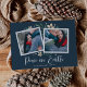 Elégant et festif carte photo de vacances encadre deux de vos photos carrés préférées avec une subtile bordure de pont et un feuillage vert et blanc de vacances en regardant les coins. "Peace On Earth" apparaît en bas dans un script de calligraphie blanche, avec vos noms et l'année en dessous.