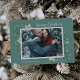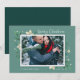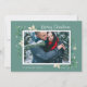 Elégant et festif carte photo de vacances encadre votre image horizontale ou paysagère préférée avec une subtile bordure de pont et feuillage vert et blanc de vacances en regardant aux coins. "Joyeux Noël" apparaît en haut à droite dans le script de calligraphie, avec vos noms et l'année en bas à gauche.