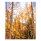 Helles und fröhliches Foto der Sonne, das durch goldene aspenförmige Blätter strahlt