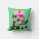 This bright floral accent pillow features a playful mix of pink and green flowers in a cheerful, modern style.