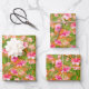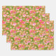 Drei Blätter Packpapier mit tropischen rosa und korallenfarbenen Hibiskus-Blume auf einem orangen Hintergrund (oder einer beliebigen Farbe Sie wählen). MEHR Farben in unserem Geschäft.